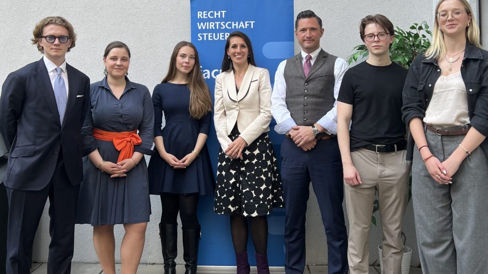 Das Autorenteam unseres neuen Buchprojekts „Fachwörterbuch Römisches Recht“ bei einem Besuch im Verlag Facultas: v.l.n.r.: Mag. Gabriel Frechinger, Leni Simhandl, Mag. Anna Hanke, Mag. Elisabeth Kossarz, Mag. Alexander Pichler und unsere Assistenten Florian Bernhart und Hannah Kofler.